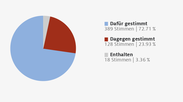 18.06.2009Bekämpfung der Kinderpornographie: ZugangserschwerungsgesetzGesetzentwurf der Fraktionen der CDU/CSU und SPD - Entwurf eines Gesetzes zur Bekämpfung der Kinderpornographie in Kommunikationsnetzen; Drsn: 16/12850 und 16/13411GesamtDafür 389 Stimmen | 72.71 Dagegen 128 Stimmen | 23.93 Enthalten 18 Stimmen | 3.36 CDU/CSUDafür 198 Stimmen | 99.5 Dagegen 1 Stimmen | 0.5 Enthalten 0 Stimmen | 0 CDUDafür 158 Stimmen | 99.37 Dagegen 1 Stimmen | 0.63 Enthalten 0 Stimmen | 0 CSUDafür 40 Stimmen | 100 Dagegen 0 Stimmen | 0 Enthalten 0 Stimmen | 0 SPDDafür 190 Stimmen | 96.94 Dagegen 3 Stimmen | 1.53 Enthalten 3 Stimmen | 1.53 FDPDafür 0 Stimmen | 0 Dagegen 54 Stimmen | 100 Enthalten 0 Stimmen | 0 GRÃNEDafür 0 Stimmen | 0 Dagegen 33 Stimmen | 68.75 Enthalten 15 Stimmen | 31.25 DIE LINKE.Dafür 0 Stimmen | 0 Dagegen 36 Stimmen | 100 Enthalten 0 Stimmen | 0 fraktionslosDafür 1 Stimmen | 50 Dagegen 1 Stimmen | 50 Enthalten 0 Stimmen | 0 Inhalte laden...